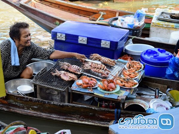 بدون شک، دامنون سادوآک، معروف ترین بازار شناور در کل تایلند است. تقریباً تمام گردشگران، چه مسافران تور تایلند لوکس و چه همراهان محترم تور تایلند ارزان، بازدید از این بازار جالب را در لیست جاهای مهم دیدنی قرار می دهند. خرید سبزیجات و میوه های تازه از قایق هایی که با انبه، نارگیل، رامبوتان و سایر محصولات استوایی پر شده اند، تجربه ای شگفت انگیز است که تا آخر عمر فراموش نخواهید کرد. چشیدن غذاهای خیابانی سنتی مانند پد تای، تام یام، نودل سوپ و دسرهای نارگیلی، آن هم حین تماشای جریان آب روان و زلال، بیش تر شبیه تصاویر بهشتی است تا لحظاتی از زندگی واقعی. اگر به عکاسی و ساخت ویدئوهای طبیعت گردی علاقه دارید، این جا بهترین فضا برای ثبت تصاویر ناب از سفرتان است.